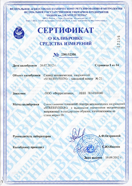 - Сертификат калибровки средства измерения, удостоверяющий о проведении калибровки, ее результатах и применимых методиках. Кроме этого, в сертификате отражены: сведения об аккредитации, сведения о средстве измерения (наименование, модификация, заводской номер, информация о документах, по которым была проведена калибровка, перечень влияющих факторов).